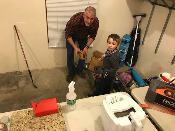 Uncle Bill & Joey, Baseball Glove, LaCross Glove & Hockey Stick. Ready for the garage...