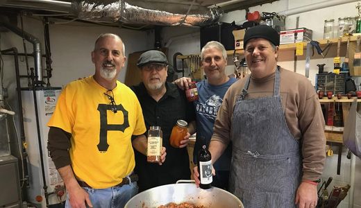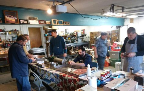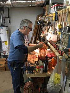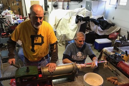 Bill carefully measuring the ingredients for the next batch of Sausage.