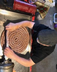 Robbie finishing off approximately 15 pound roll to be prepared to hang for pepperoni.